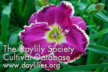 Description : cranberry red self with wide yellow gold edge with a green throat