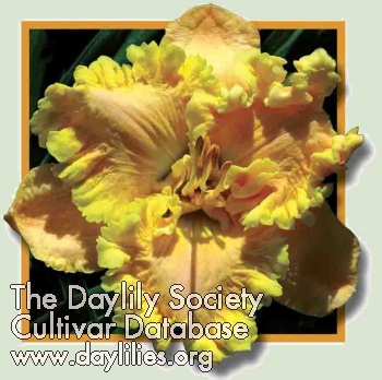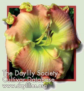 | Description : cream yellow with pink blush and gold edge above green throat | |