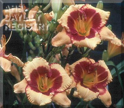 | Description : Lemon yellow with dark purple eye and edge. | |