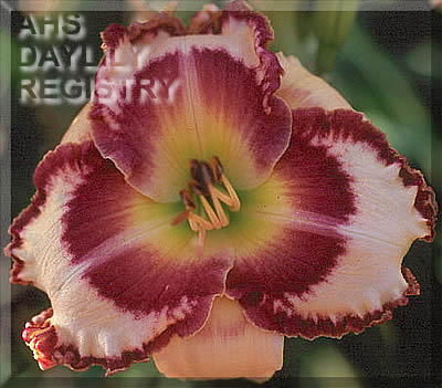 | Description : blend of lavender mauve purple, with dark mauve purple eye, yellow to green throat and dark purple and gold edge | |