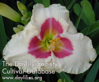 | Description : cream with deep violet purple eye above green throat | |